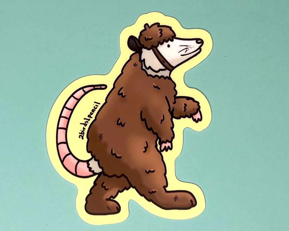 Raccoon & possum falling together sticker - inspired by lyrics from the Mountain Goats